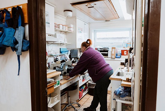 One half of our Critical Care area is behind a floor-to- ceiling movable glass wall. This is our isolation ward, where we keep patients with extreme conditions or potentially communicable illnesses. This part of the clinic has restricted access for the safety of all our patients, and we have strict protocols for dealing with all items that enter or leave this area.